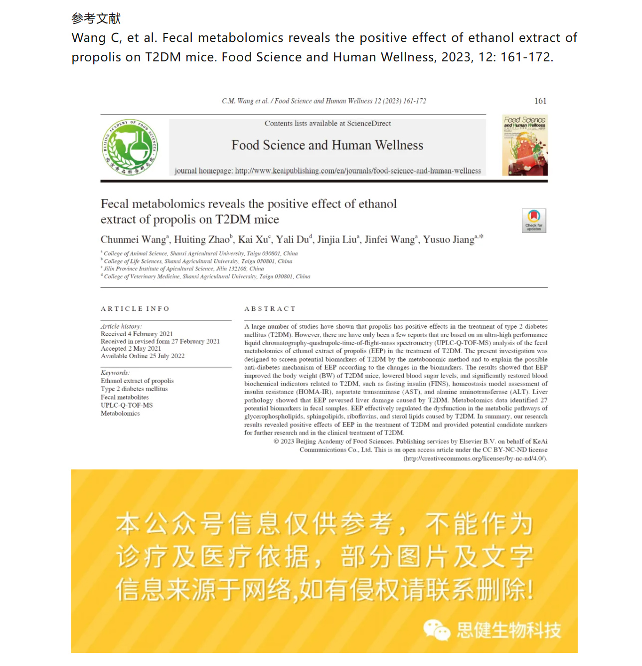 【科研速遞】蜂膠乙醇提取物如何“修復”糖尿病?糞便代謝組學揭開關鍵機制!