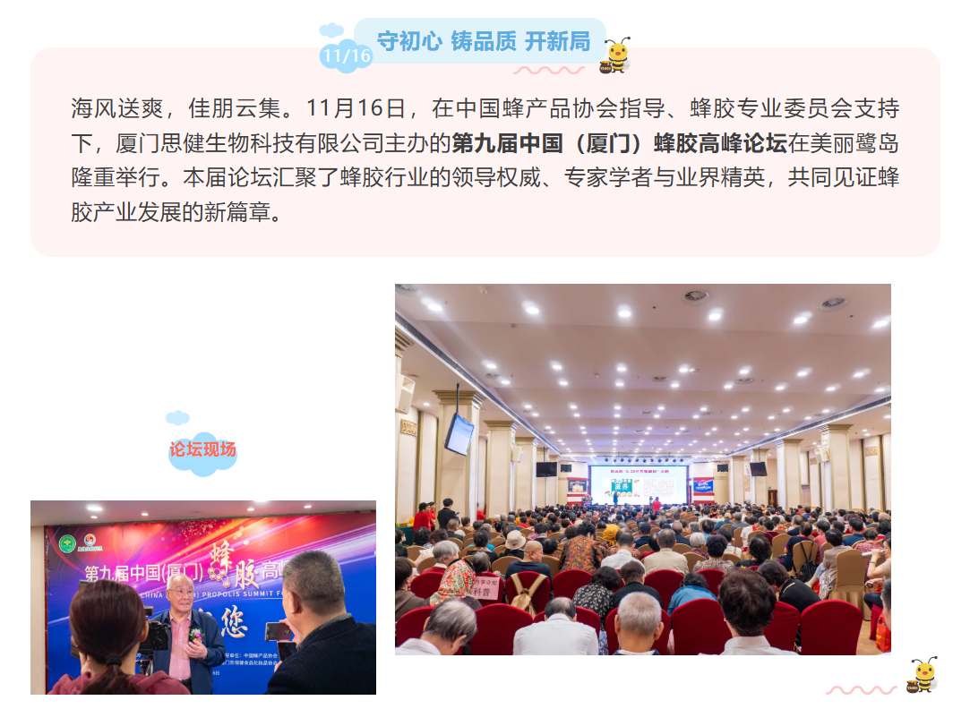 思健生物科技誠邀您共赴廈門出席第九屆中國(廈門)蜂膠高峰論壇:與蜂業(yè)權(quán)威面對面,洞見蜂膠國際新未來